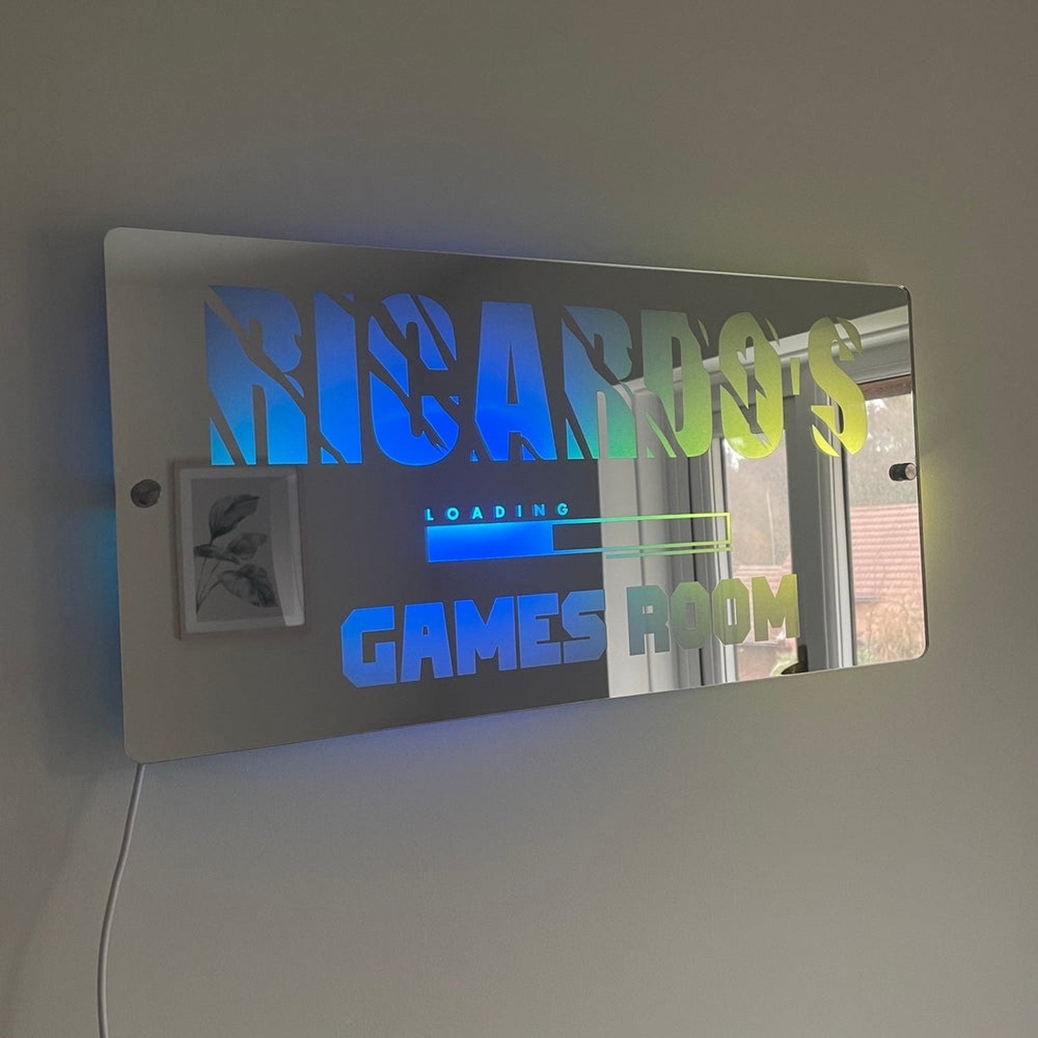 Transform your gaming zone into an immersive experience with this custom LED mirror sign.